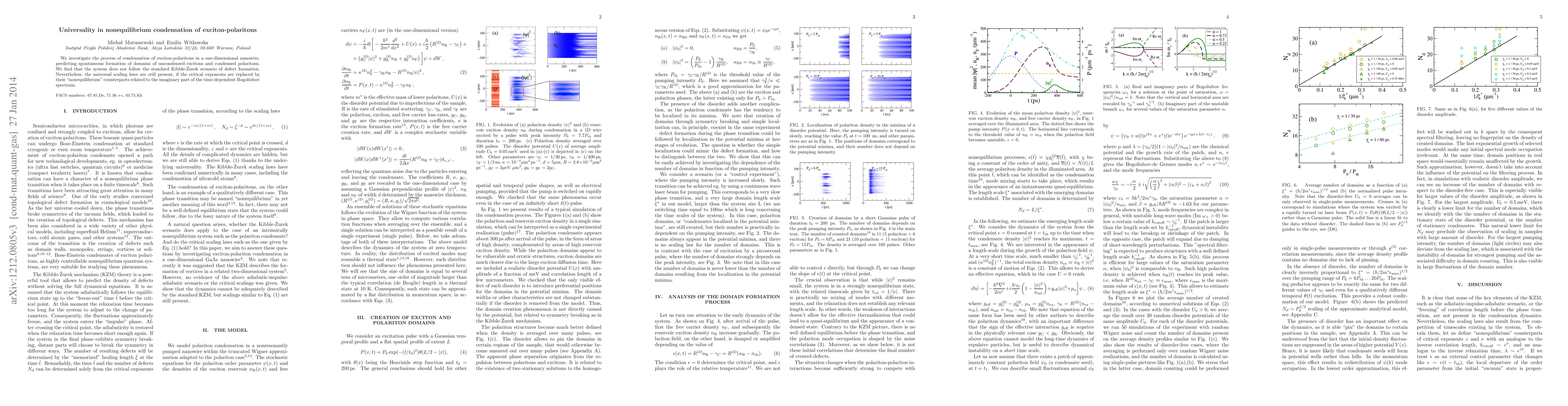 This study explores the condensation of exciton-polaritons in a one-dimensional nanowire, revealing spontaneous domain formation and a universal scaling law for domain density due to competing timescales. Contrary to typical nonequilibrium phase transitions, the system deviates from the Kibble-Zurek scenario.