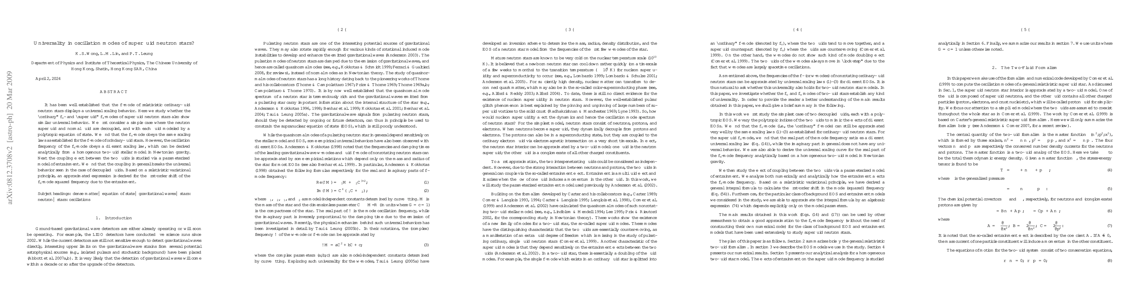 Researchers investigate whether superfluid neutron stars exhibit universal scaling behavior in their oscillation modes, finding that some modes do but others do not, with coupling between fluids breaking universality.