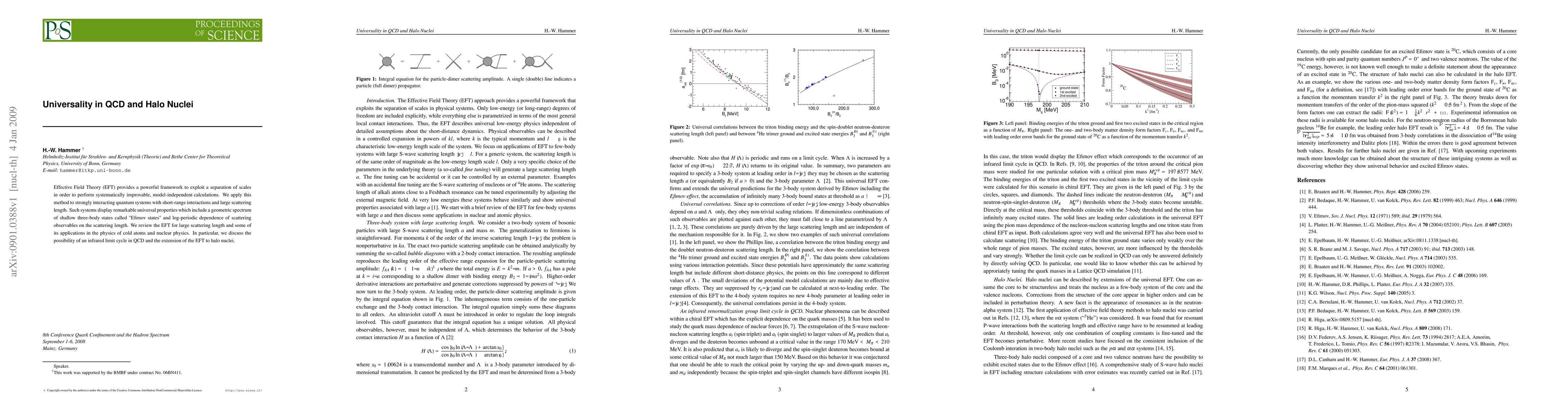 This paper applies Effective Field Theory (EFT) to explore the universality in quantum chromodynamics (QCD) and halo nuclei, highlighting the remarkable universal properties such as Efimov states and log-periodic scattering behavior. It also discusses the potential for an infrared limit cycle in QCD and extends EFT to describe the phenomena in halo nuclei.