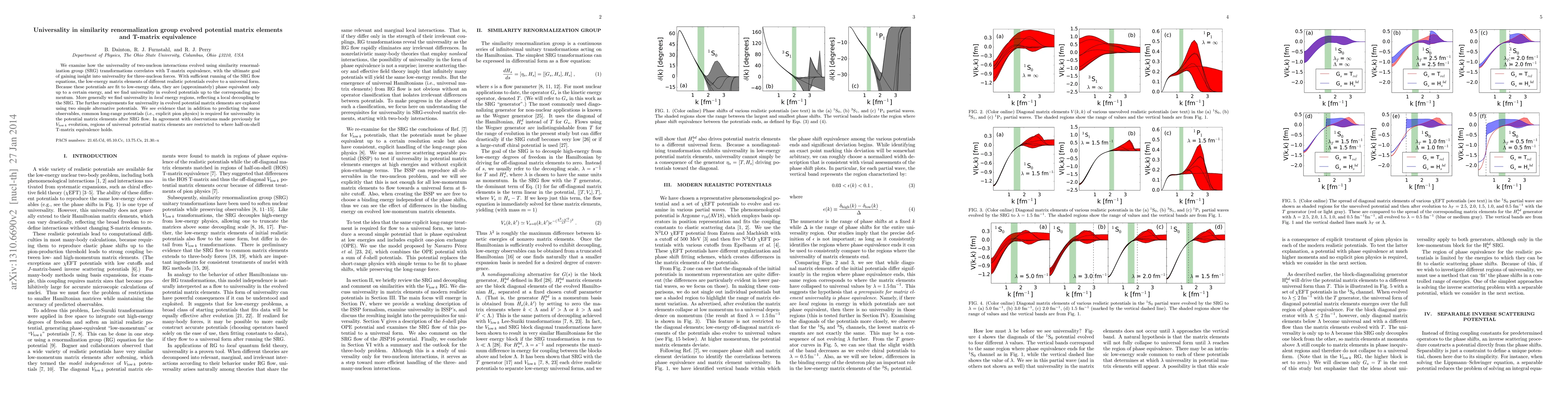 We examine how the universality of two-nucleon interactions evolved using similarity renormalization group (SRG) transformations correlates with T-matrix equivalence, with the ultimate goal of gaining insight into universality for three-nucleon forces. With sufficient running of the SRG flow equations, the low-energy matrix elements of different realistic potentials evolve to a universal form. Because these potentials are fit to low-energy data, they are (approximately) phase equivalent only up to a certain energy, and we find universality in evolved potentials up to the corresponding momentum. More generally we find universality in local energy regions, reflecting a local decoupling by the SRG. The further requirements for universality in evolved potential matrix elements are explored using two simple alternative potentials. We see evidence that in addition to predicting the same observables, common long-range potentials (i.e., explicit pion physics) is required for universality in the potential matrix elements after SRG flow. In agreement with observations made previously for Vlowk evolution, regions of universal potential matrix elements are restricted to where half-on-shell T-matrix equivalence holds.