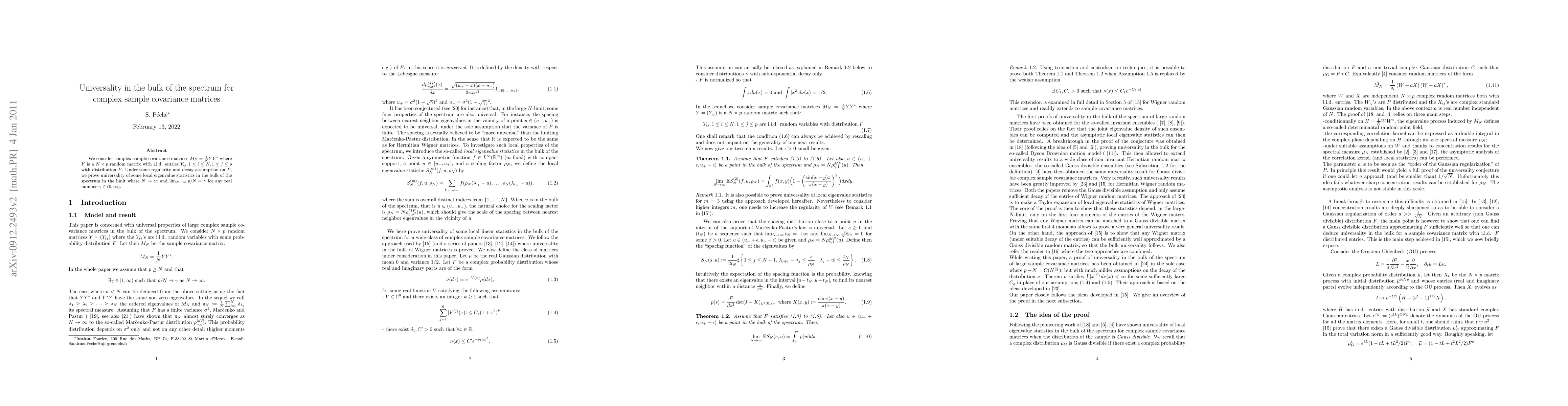 This work presents novel results on the universality of spectral statistics for certain classes of random matrices, which have implications for our understanding of quantum systems and other areas of physics.