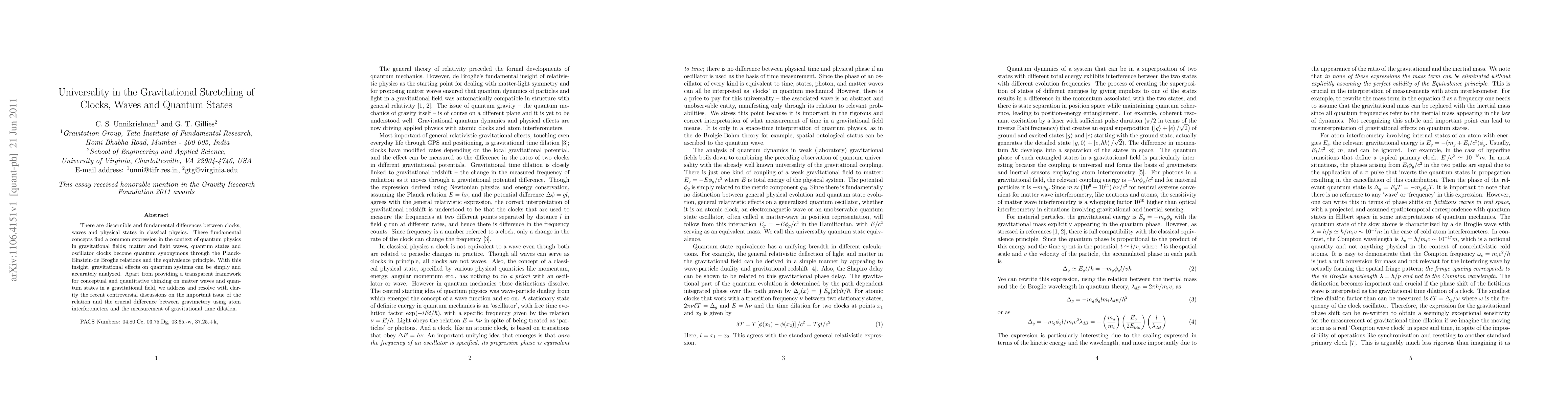 This paper explores the universality of gravitational effects on clocks, waves, and quantum states, revealing their equivalence through the Planck-Einstein-de Broglie relations and the equivalence principle. It provides a clear framework for understanding gravitational impacts on quantum systems and resolves debates regarding gravimetery and gravitational time dilation.