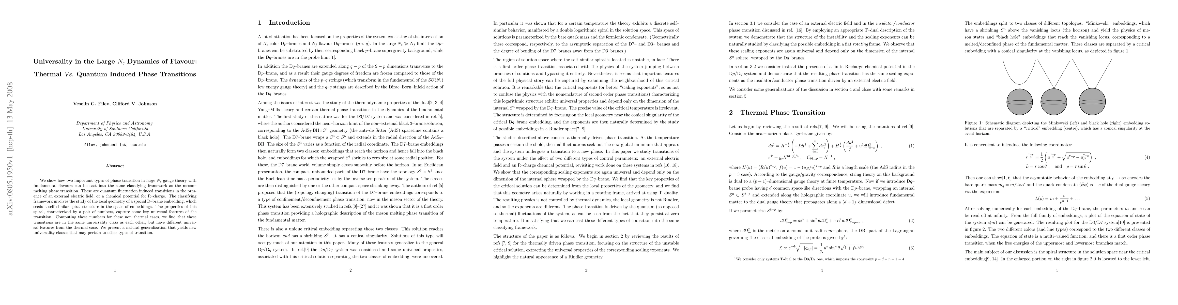 We show how two important types of phase transition in large N_c gauge theory with fundamental flavours can be cast into the same classifying framework as the meson-melting phase transition. These are quantum fluctuation induced transitions in the presence of an external electric field, or a chemical potential for R-charge. The classifying framework involves the study of the local geometry of a special D-brane embedding, which seeds a self-similar spiral structure in the space of embeddings. The properties of this spiral, characterized by a pair of numbers, capture some key universal features of the transition. Computing these numbers for these non-thermal cases, we find that these transitions are in the same universality class as each other, but have different universal features from the thermal case. We present a natural generalization that yields new universality classes that may pertain to other types of transition.