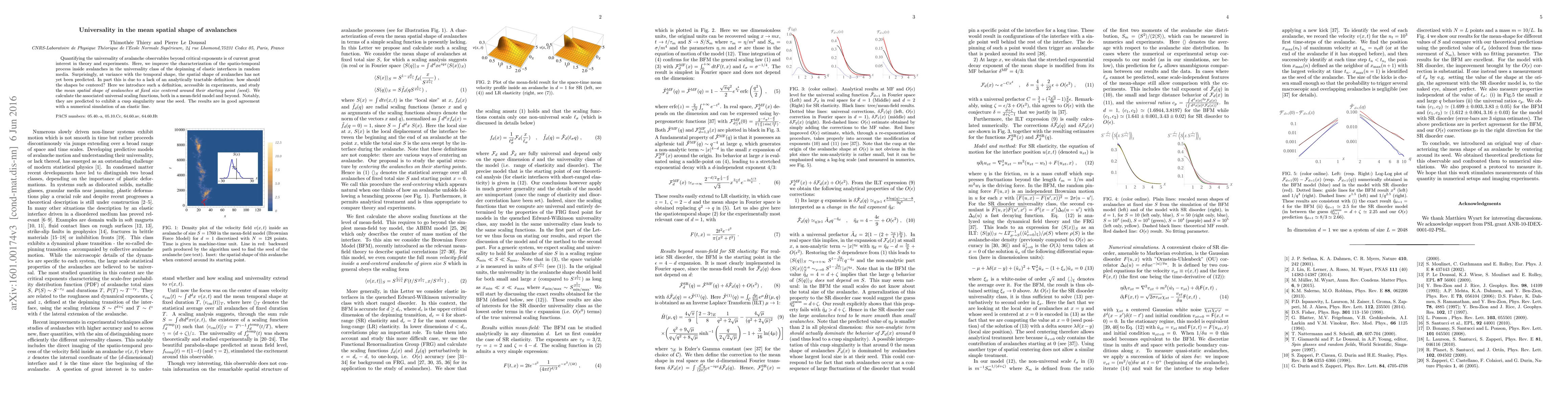 This paper introduces a new definition for the mean spatial shape of avalanches in the depinning of elastic interfaces, predicting universal scaling functions with a cusp singularity near the seed. The findings are validated through numerical simulations of an elastic line model.