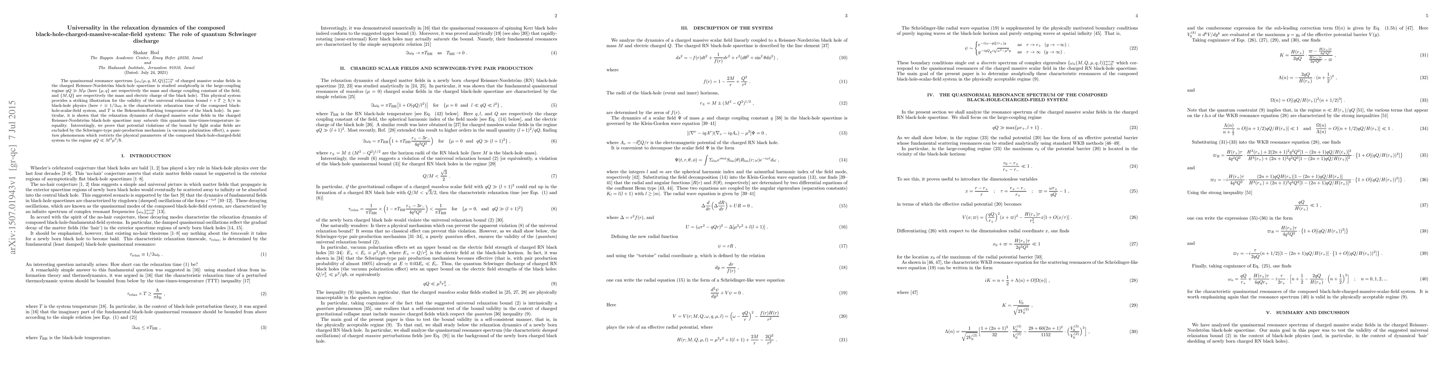 The quasinormal resonance spectrum $\{\omega_n(\mu,q,M,Q)\}_{n=0}^{n=\infty}$ of charged massive scalar fields in the charged Reissner-Nordstr\"om black-hole spacetime is studied {\it analytically} in the large-coupling regime $qQ\gg M\mu$ (here $\{\mu, q\}$ are respectively the mass and charge coupling constant of the field, and $\{M,Q\}$ are respectively the mass and electric charge of the black hole). This physical system provides a striking illustration for the validity of the universal relaxation bound $\tau \times T \geq \hbar/\pi$ in black-hole physics (here $\tau\equiv 1/\Im\omega_0$ is the characteristic relaxation time of the composed black-hole-scalar-field system, and $T$ is the Bekenstein-Hawking temperature of the black hole). In particular, it is shown that the relaxation dynamics of charged massive scalar fields in the charged Reissner-Nordstr\"om black-hole spacetime may {\it saturate} this quantum time-times-temperature inequality. Interestingly, we prove that potential violations of the bound by light scalar fields are excluded by the Schwinger-type pair-production mechanism (a vacuum polarization effect), a {\it quantum} phenomenon which restricts the physical parameters of the composed black-hole-charged-field system to the regime $qQ\ll M^2\mu^2/\hbar$.