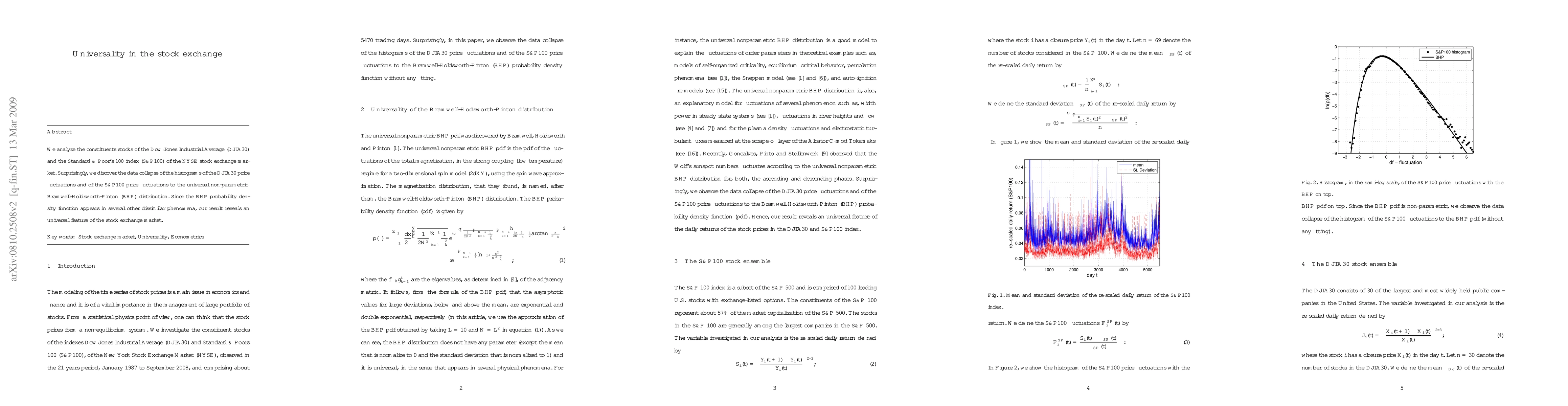 We analyze the constituents stocks of the Dow Jones Industrial Average (DJIA30) and the Standard & Poor's 100 index (S&P100) of the NYSE stock exchange market. Surprisingly, we discover the data collapse of the histograms of the DJIA30 price fluctuations and of the S&P100 price fluctuations to the universal non-parametric Bramwell-Holdsworth-Pinton (BHP) distribution. Since the BHP probability density function appears in several other dissimilar phenomena, our result reveals an universal feature of the stock exchange market.