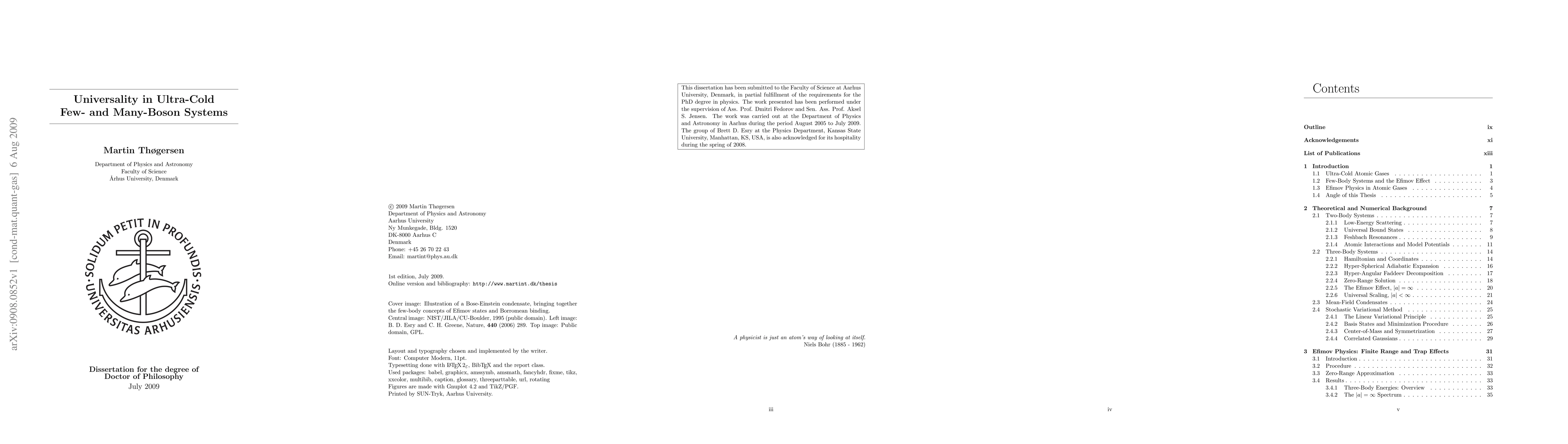 This dissertation explores universality and finite-range corrections in ultra-cold few- and many-boson systems, particularly focusing on ultra-cold atomic gases and examining Efimov physics, the N-body Efimov effect, and two-body correlations in condensates.