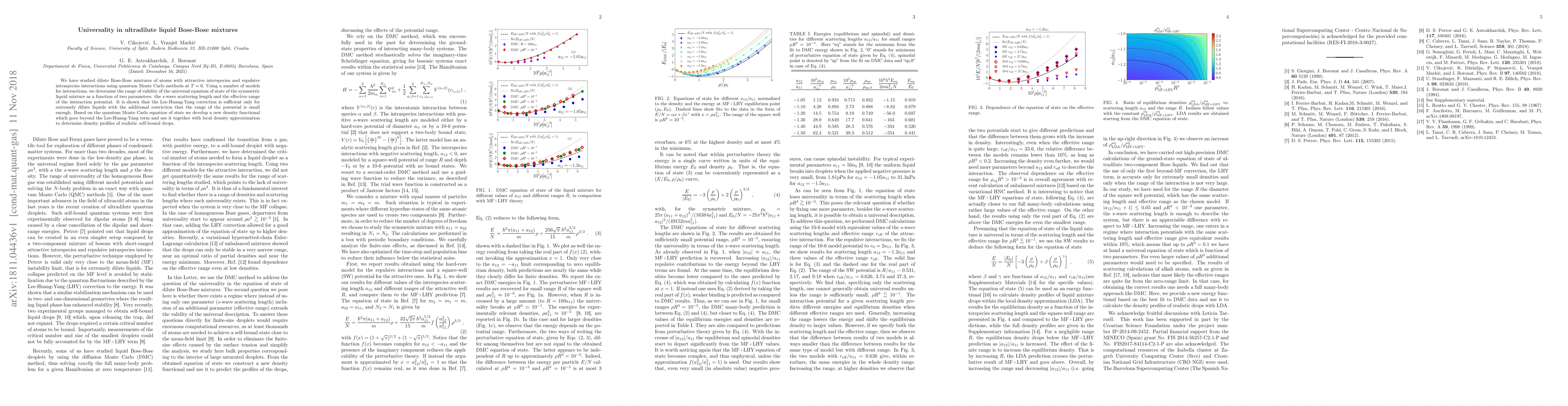 We have studied dilute Bose-Bose mixtures of atoms with attractive interspecies and repulsive intraspecies interactions using quantum Monte Carlo methods at $T=0$. Using a number of models for interactions, we determine the range of validity of the universal equation of state of the symmetric liquid mixture as a function of two parameters: the $s$-wave scattering length and the effective range of the interaction potential. It is shown that the Lee-Huang-Yang correction is sufficient only for extremely dilute liquids with the additional restriction that the range of the potential is small enough. Based on the quantum Monte Carlo equation of state we develop a new density functional which goes beyond the Lee-Huang-Yang term and use it together with local density approximation to determine density profiles of realistic self-bound drops.
