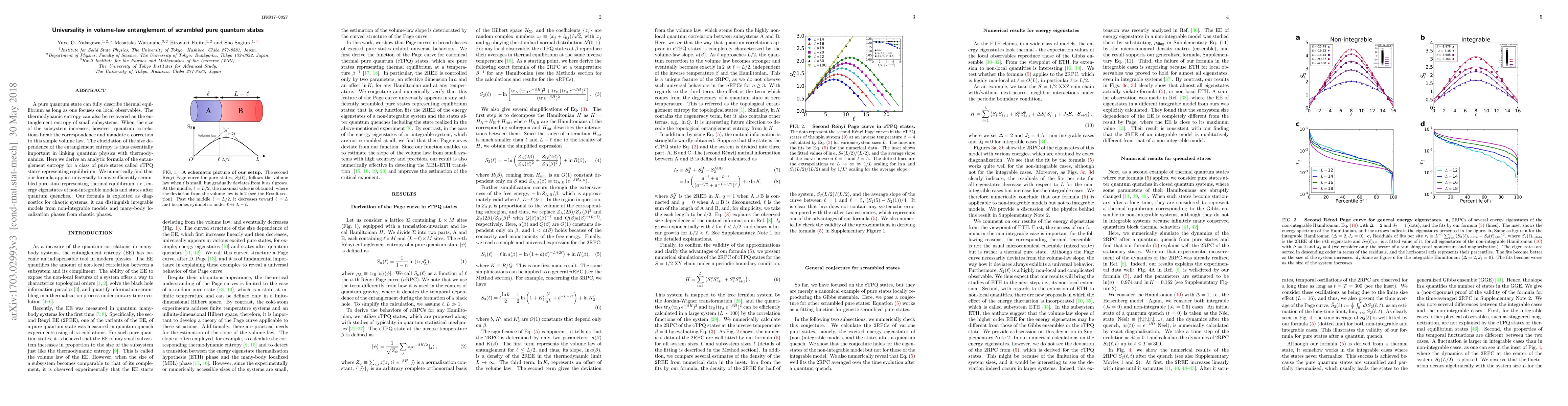 This paper derives an analytic formula for the entanglement entropy of a class of pure quantum states representing thermal equilibrium, showing its universality for sufficiently scrambled states. The formula serves as a diagnostic tool to distinguish chaotic systems from integrable ones and detect many-body localization.