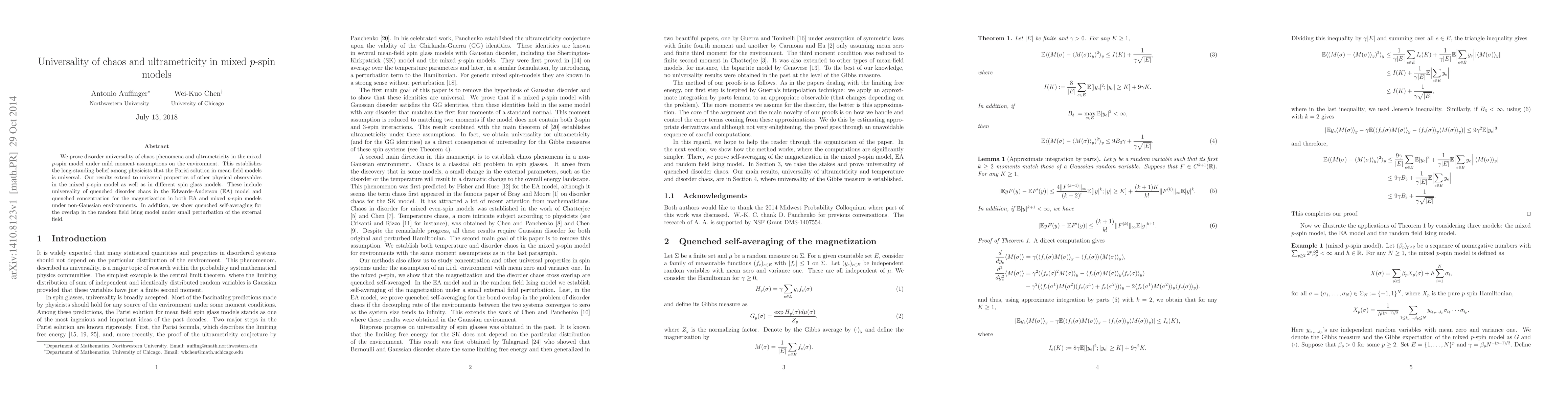 This paper proves the universality of chaos and ultrametricity in mixed p-spin models, confirming the Parisi solution's universality in mean-field models. It extends these findings to various physical observables in different spin glass models, including the Edwards-Anderson model and the random field Ising model.