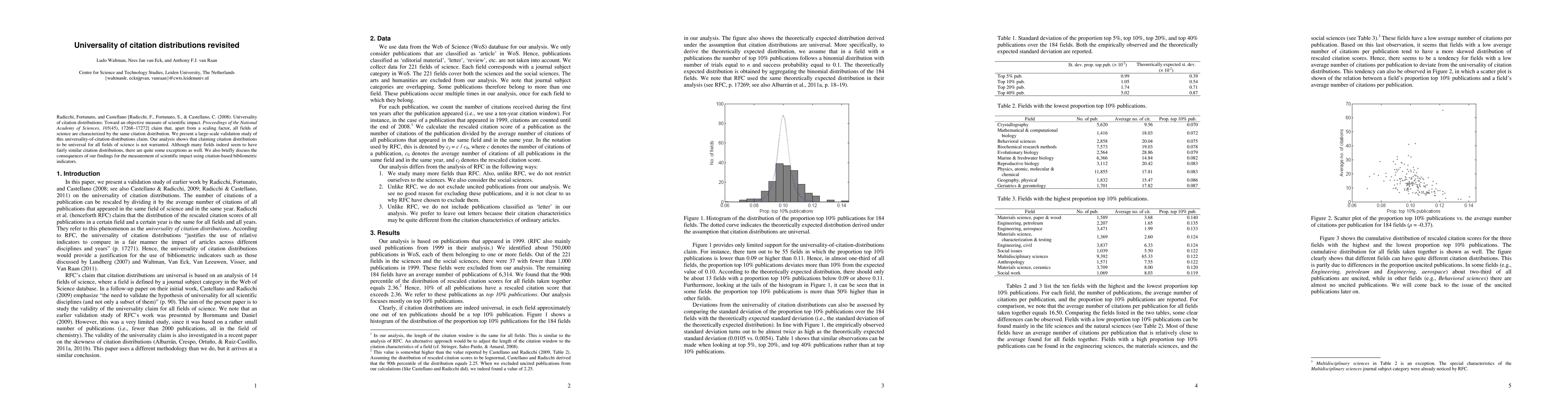 This paper challenges the universality of citation distributions across scientific fields, finding that while many fields share similar citation patterns, significant exceptions exist. The study highlights the limitations of using citation-based metrics for assessing scientific impact across diverse disciplines.
