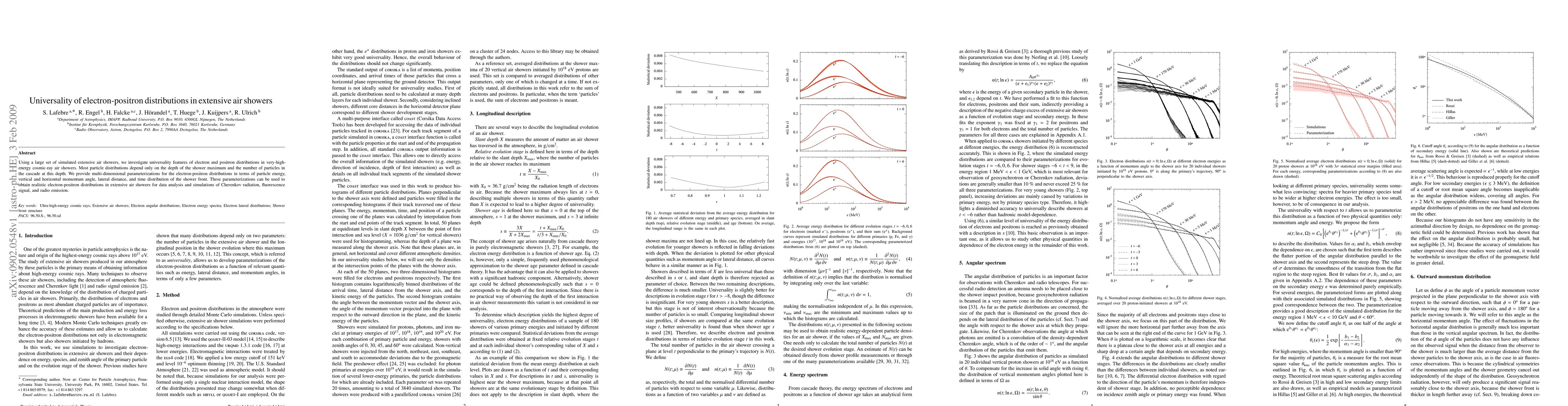 Researchers found that electron-positron distributions in cosmic-ray air showers depend on shower depth and particle number, allowing for realistic simulations of Cherenkov radiation, fluorescence signal, and radio emission.