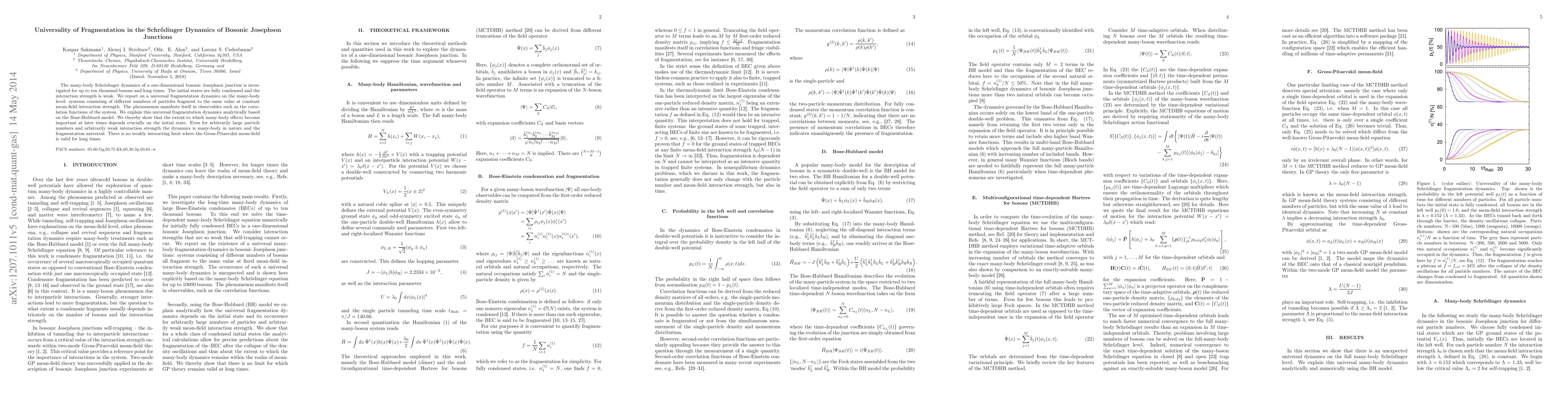 Researchers studied the many-body Schr"odinger dynamics of bosonic Josephson junctions, finding a universal fragmentation phenomenon that occurs regardless of initial state or interaction strength, even for large numbers of particles.