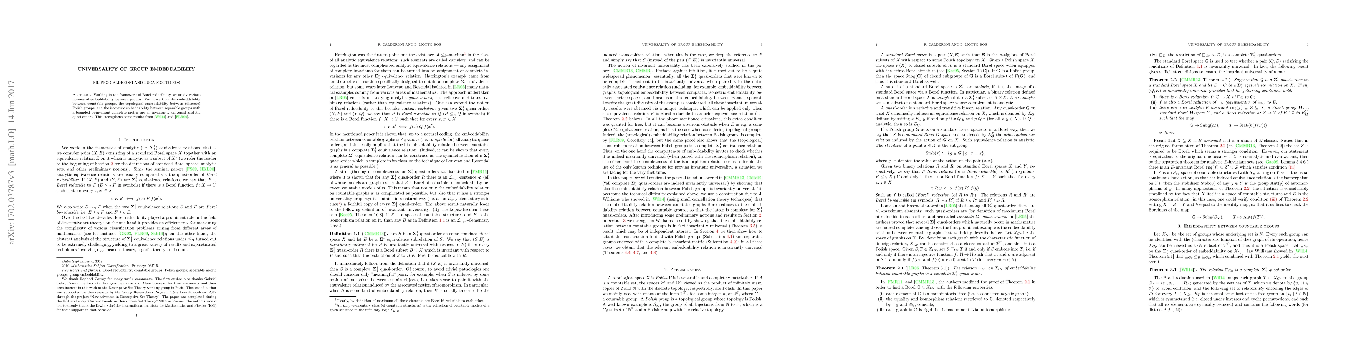 This research demonstrates that several types of group embeddability are invariantly universal analytic quasi-orders under Borel reducibility, extending prior findings in the field. Specifically, it shows that countable, Polish, and separable group embeddings all share this universal property.