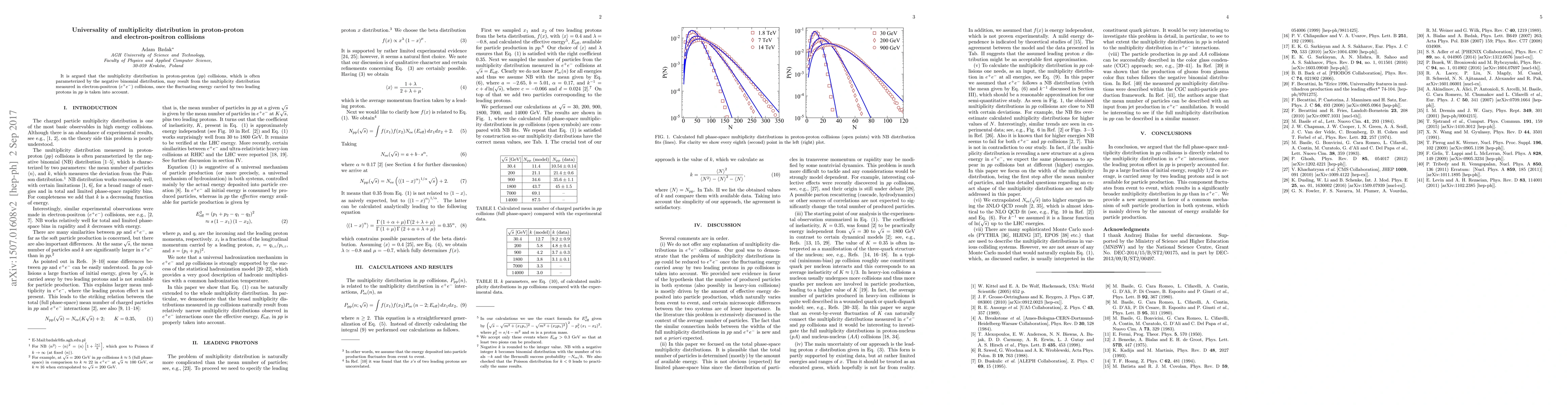 Proton-proton collisions may have a multiplicity distribution similar to electron-positron collisions if fluctuating energy from leading protons is considered, according to this research paper.