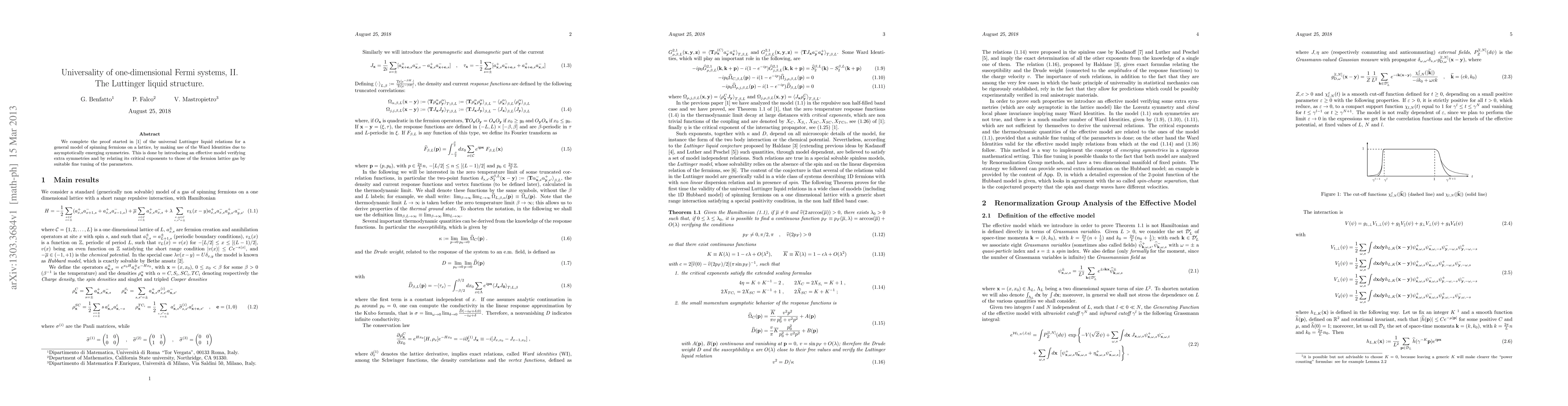 This paper completes the proof of universal Luttinger liquid relations for a general model of spinning fermions on a lattice, utilizing Ward Identities and asymptotically emerging symmetries. It introduces an effective model with extra symmetries and relates its critical exponents to those of the fermion lattice gas through parameter fine-tuning.