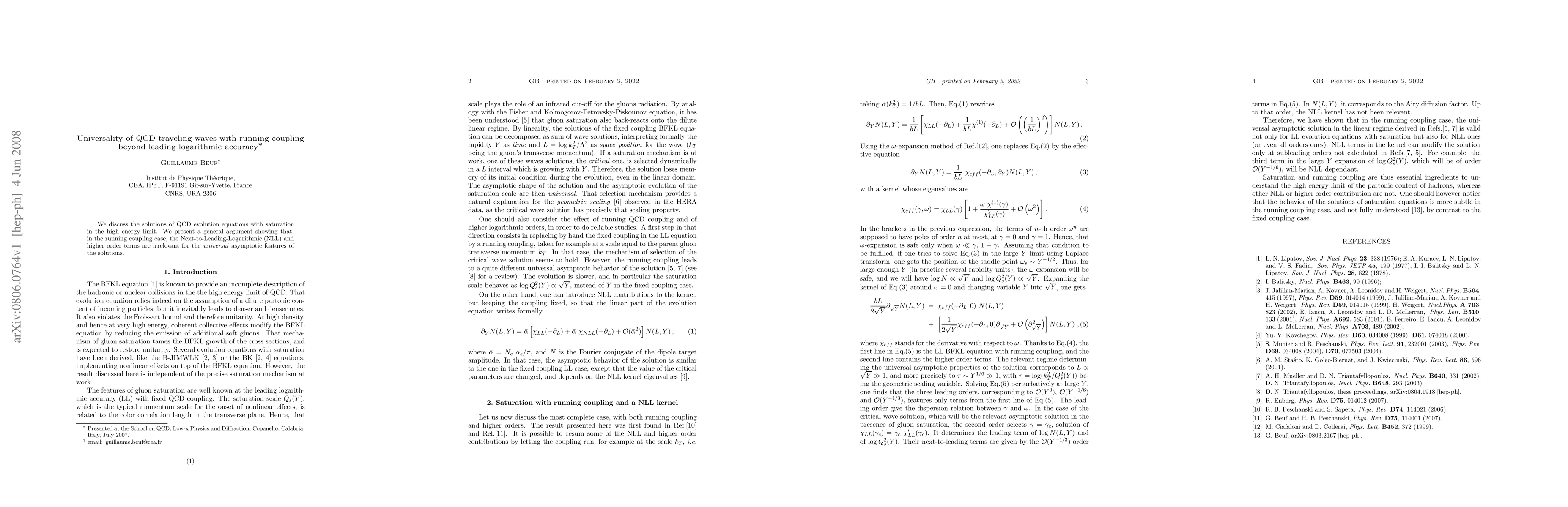 Summary: This paper argues that in Quantum Chromodynamics (QCD) with a running coupling, Next-to-Leading-Logarithmic (NLL) and higher-order terms do not affect the universal asymptotic behavior of solutions, focusing on high-energy limits and saturation phenomena.