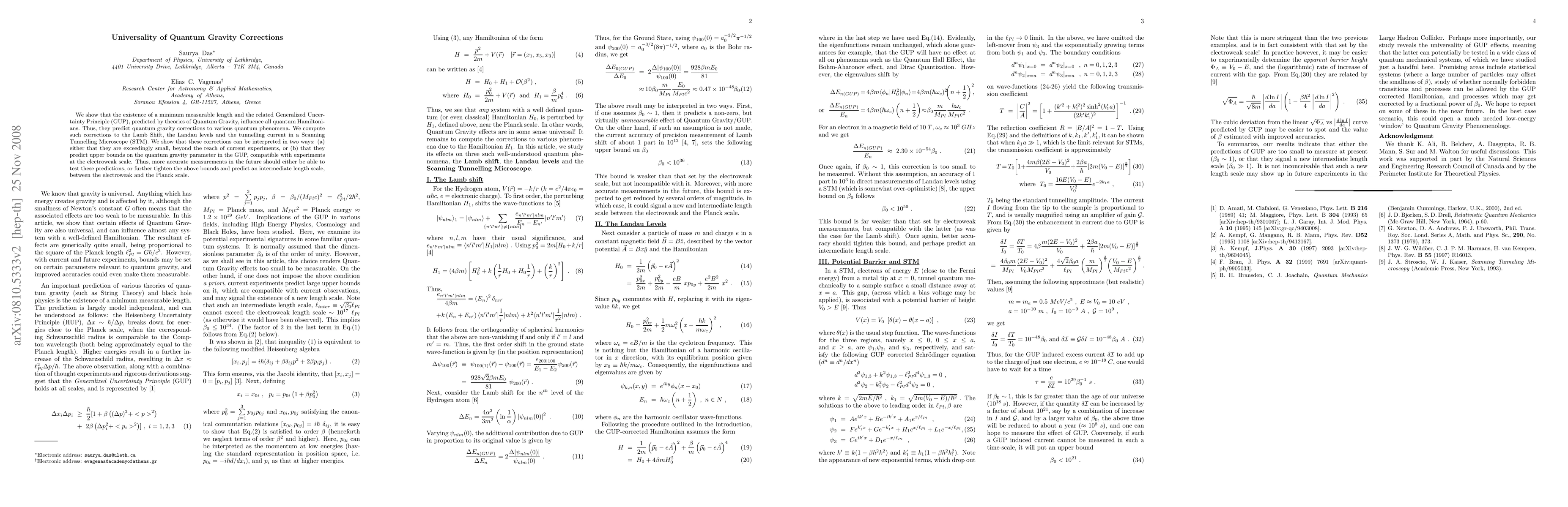 This paper demonstrates that quantum gravity corrections, arising from a minimum measurable length and the Generalized Uncertainty Principle, affect all quantum Hamiltonians, predicting corrections to phenomena like the Lamb Shift and Landau levels. These corrections either remain undetectable with current experiments or suggest upper bounds on quantum gravity parameters, potentially revealing an intermediate length scale between the electroweak and Planck scales.