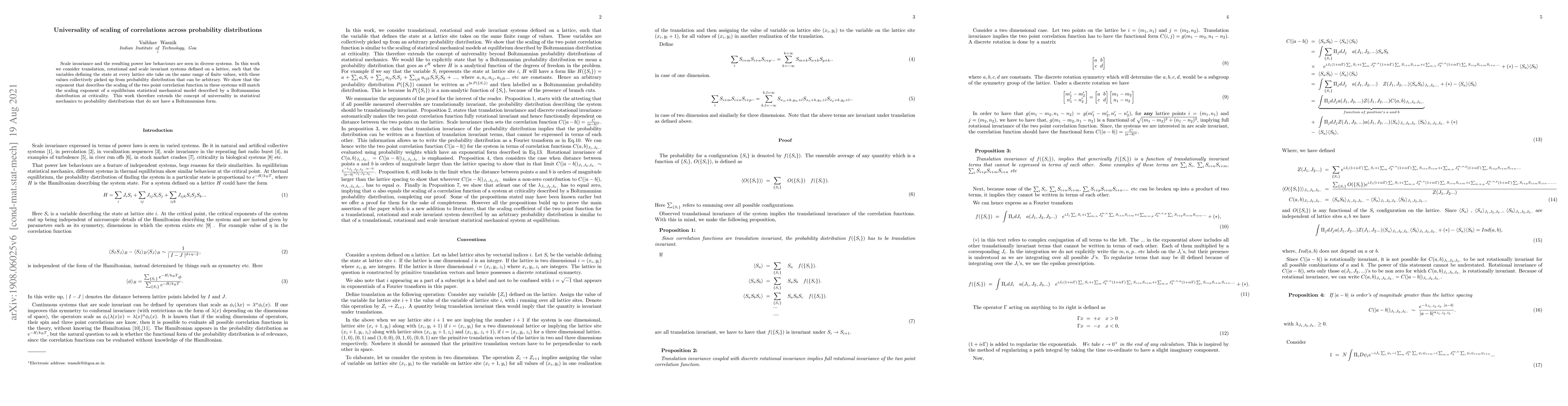Scale invariance and the resulting power law behaviours are seen in diverse systems. In this work we consider translation, rotational and scale invariant systems defined on a lattice, such that the variables defining the state at every lattice site take on the same range of finite values, with these values collectively picked up from probability distribution that can be arbitrary. We show that the exponent that describes the scaling of the two point correlation function in these systems will match the scaling exponent of a equilibrium statistical mechanical model described by a Boltzmannian distribution at criticality. This work therefore extends the concept of universality in statistical mechanics to probability distributions that do not have a Boltzmannian form.