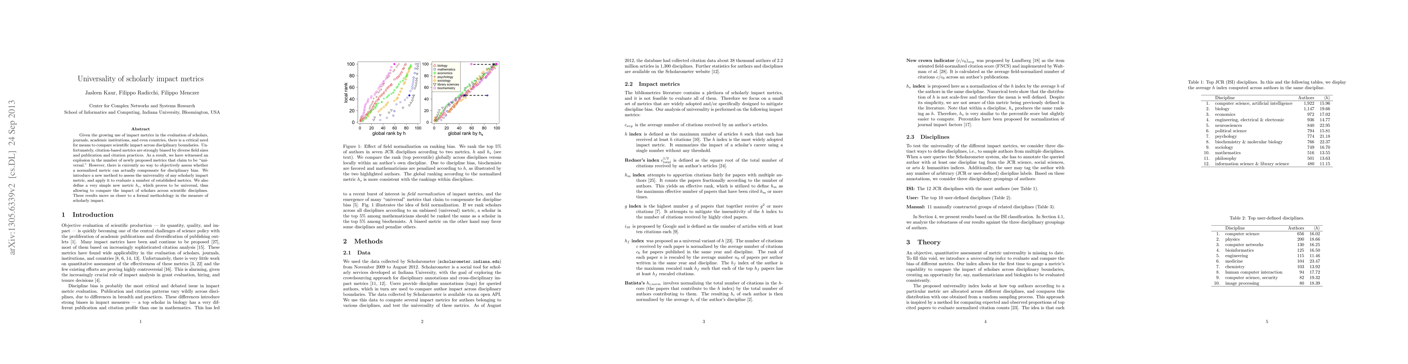 The introduction of a universality index and the proposal of the hs metric, which is intuitive, easy to compute, and universal across disciplines.