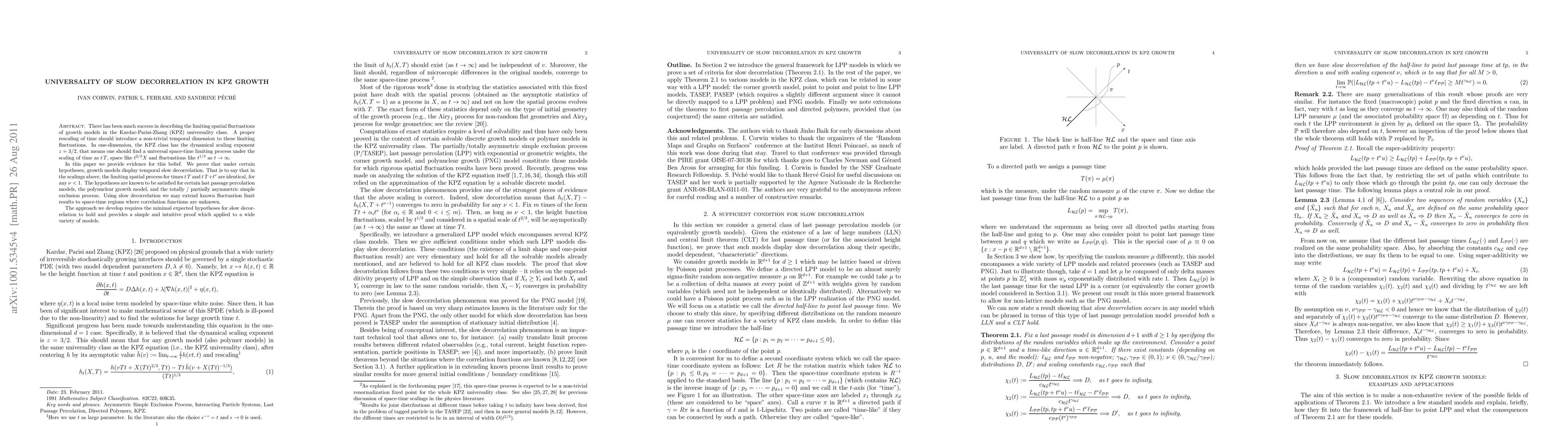 A new mathematical framework was developed to analyze slow decorrelations in Kardar-Parisi-Zhang growth models, which provides a deeper understanding of the underlying mechanisms.