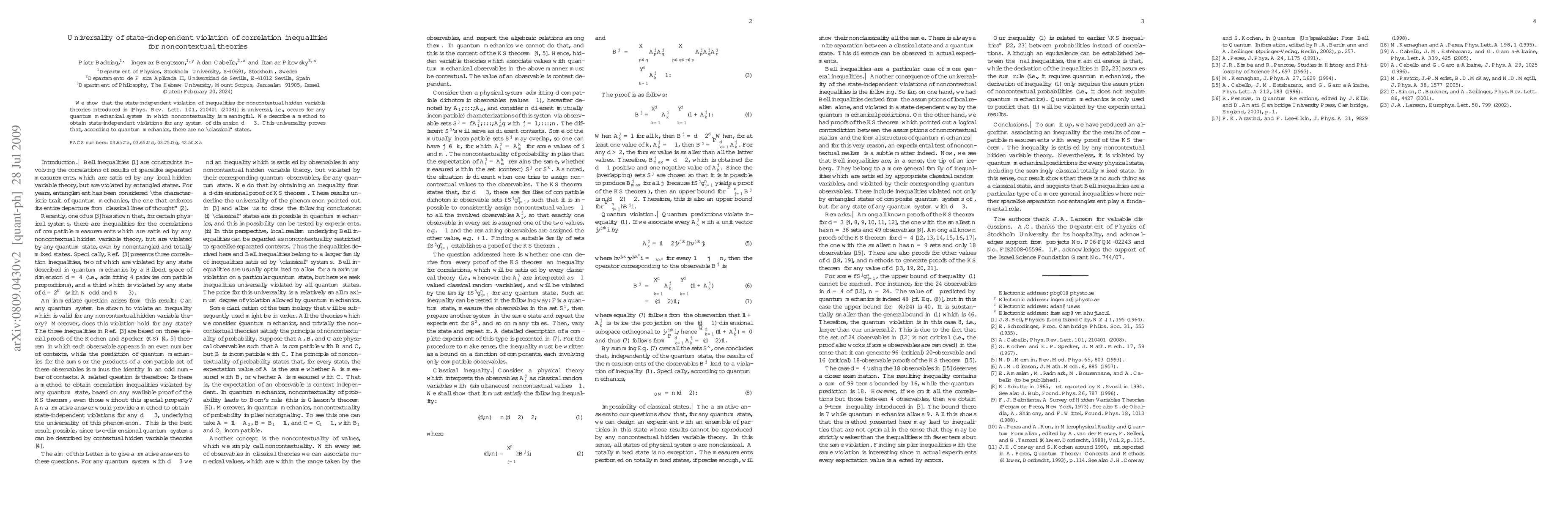 Matthias Kleinmann, Otfried Gühne, Jan-Åke Larsson et al.