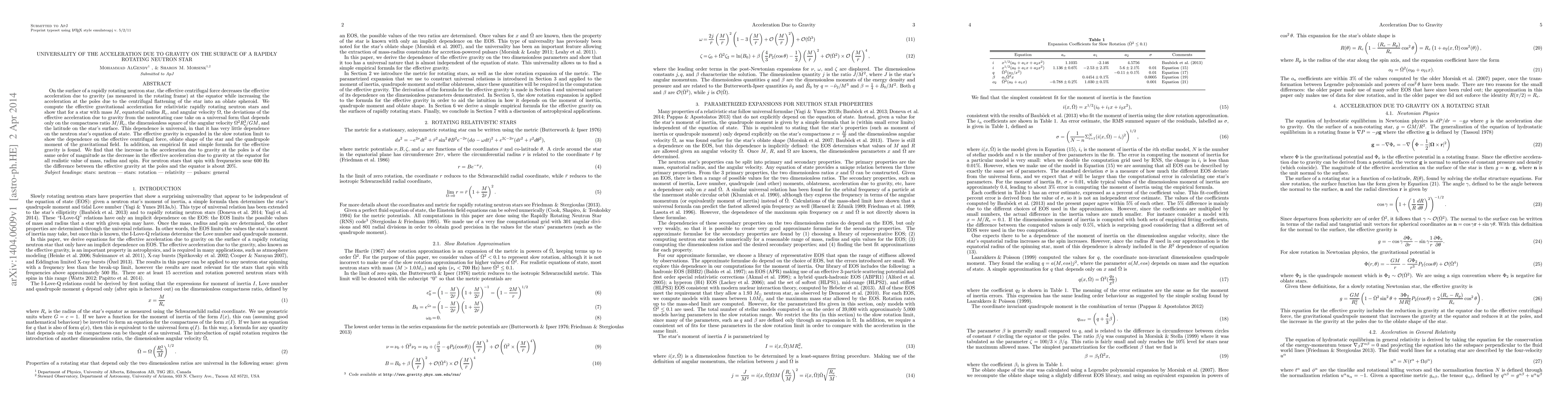 The paper presents a detailed relativistic computation of effective gravitational acceleration on rapidly rotating neutron stars, providing a slow-rotation approximation with an empirical fit.