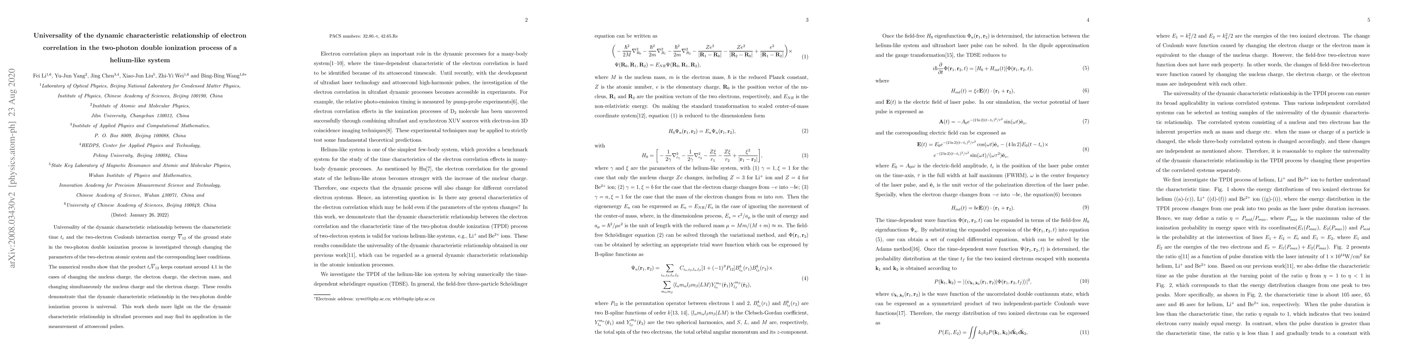 Universality of the dynamic characteristic relationship between the characteristic time $t_c$ and the two-electron Coulomb interaction energy $\overline{V}_{12}$ of the ground state in the two-photon double ionization process is investigated through changing the parameters of the two-electron atomic system and the corresponding laser conditions. The numerical results show that the product $t_{c}\overline{V}_{12}$ keeps constant around 4.1 in the cases of changing the nucleus charge, the electron charge, the electron mass, and changing simultaneously the nucleus charge and the electron charge. These results demonstrate that the dynamic characteristic relationship in the two-photon double ionization process is universal. This work sheds more light on the the dynamic characteristic relationship in ultrafast processes and may find its application in the measurement of attosecond pulses.