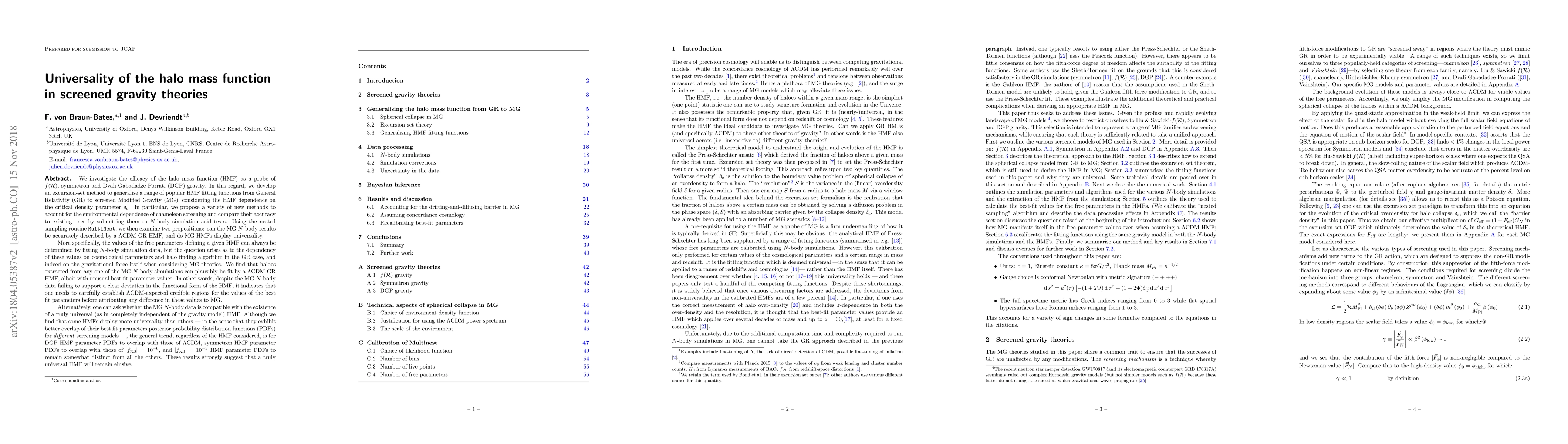 The study explored the use of the halo mass function (HMF) in screened modified gravity (MG) theories, employing a Bayesian approach with N-body simulations to estimate maximum likelihood parameters and model likelihoods. The method involved converting GR HMF from σ to ν, calculating the effective fifth-force, determining the collapsed density δc, using an excursion-set technique for barrier density, and performing MCMC estimation of best-fit free parameters and their credible regions.