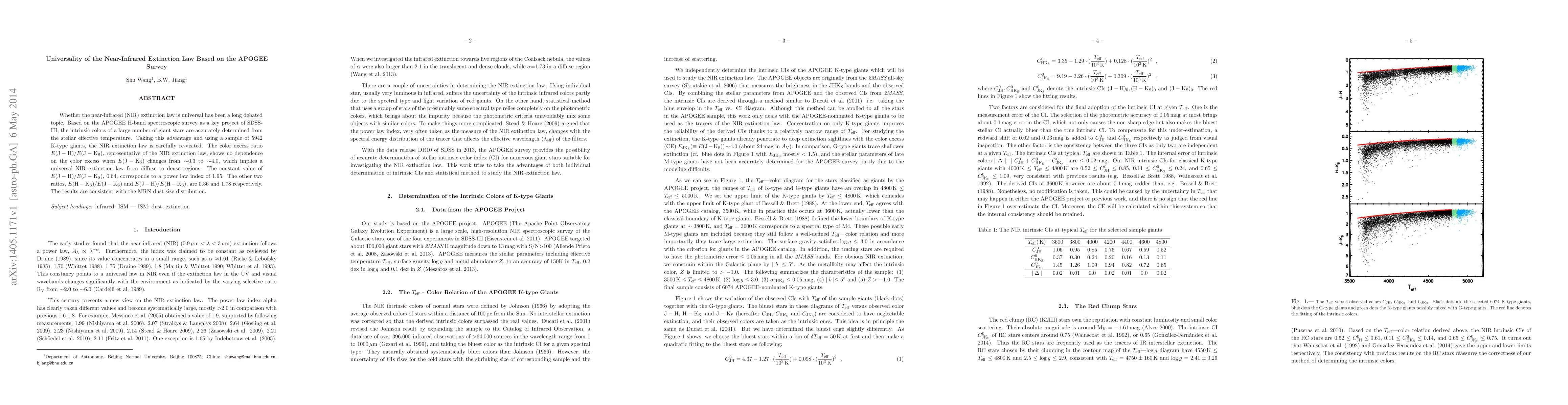 This study investigates the universality of the near-infrared extinction law using the APOGEE survey, finding that the NIR extinction law is consistent across various regions, with a constant color excess ratio E(J-H)/E(J-Ks) of 0.64. The results support the MRN dust size distribution model.