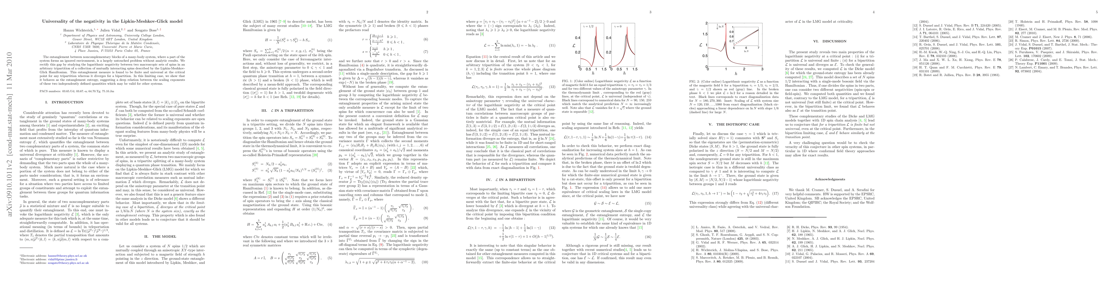 This paper investigates the logarithmic negativity in the Lipkin-Meshkov-Glick model, revealing it to be finite and universal at the critical point for any tripartition of interacting spins. It diverges for bipartitions, suggesting a profound connection between the scaling exponents of this entanglement measure and the entanglement entropy.