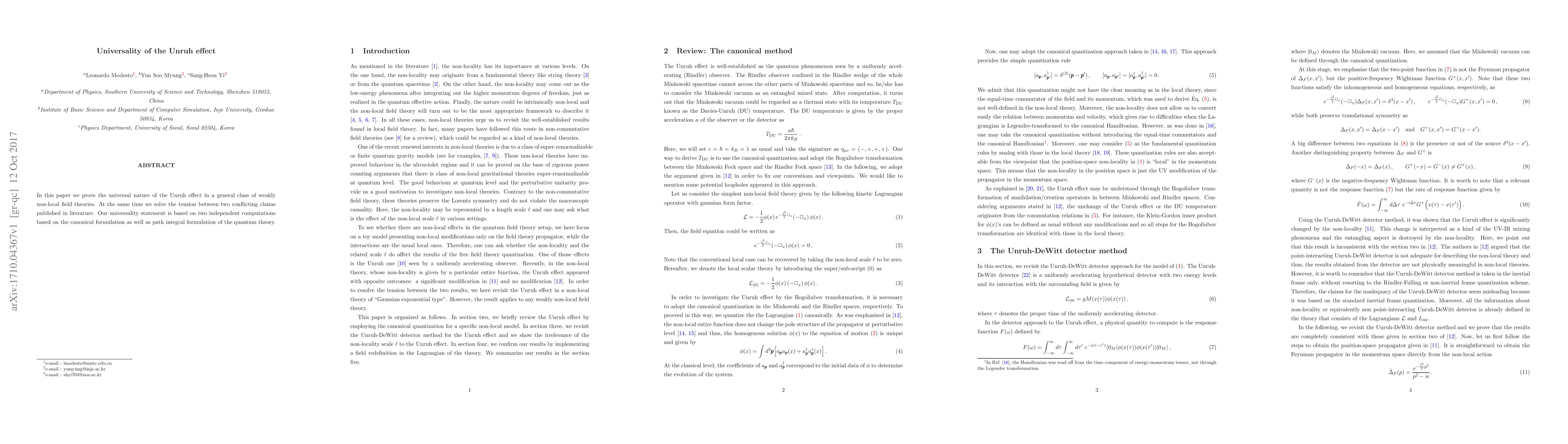 This paper establishes the universal applicability of the Unruh effect across a broad range of weakly non-local field theories, resolving previous conflicting claims through independent computations using both the canonical and path integral formulations of quantum theory.