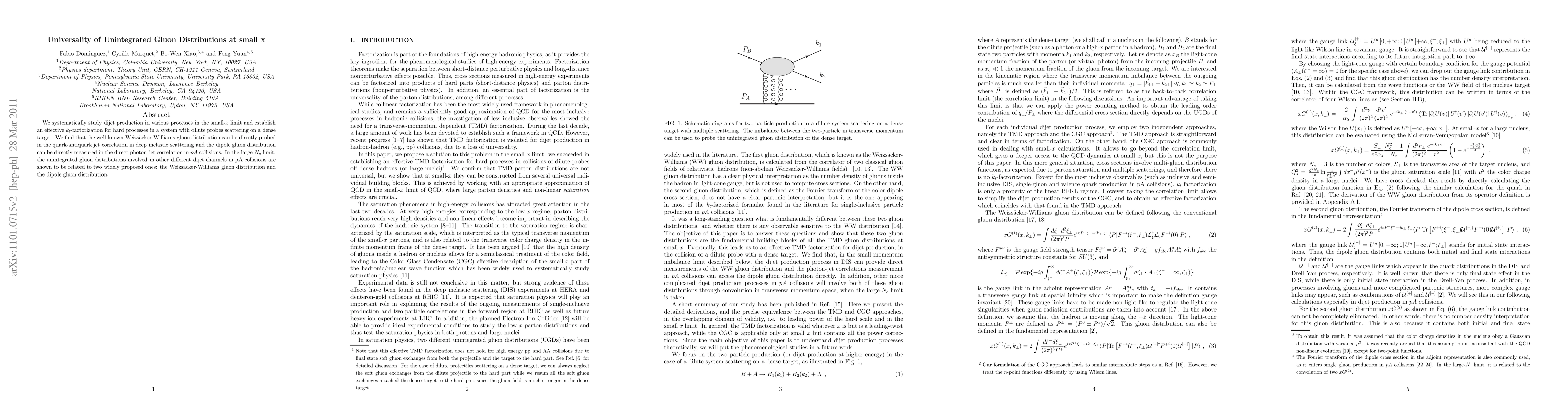 Researchers establish a connection between unintegrated gluon distributions in various processes at small x, revealing universal patterns across different channels in particle collisions.