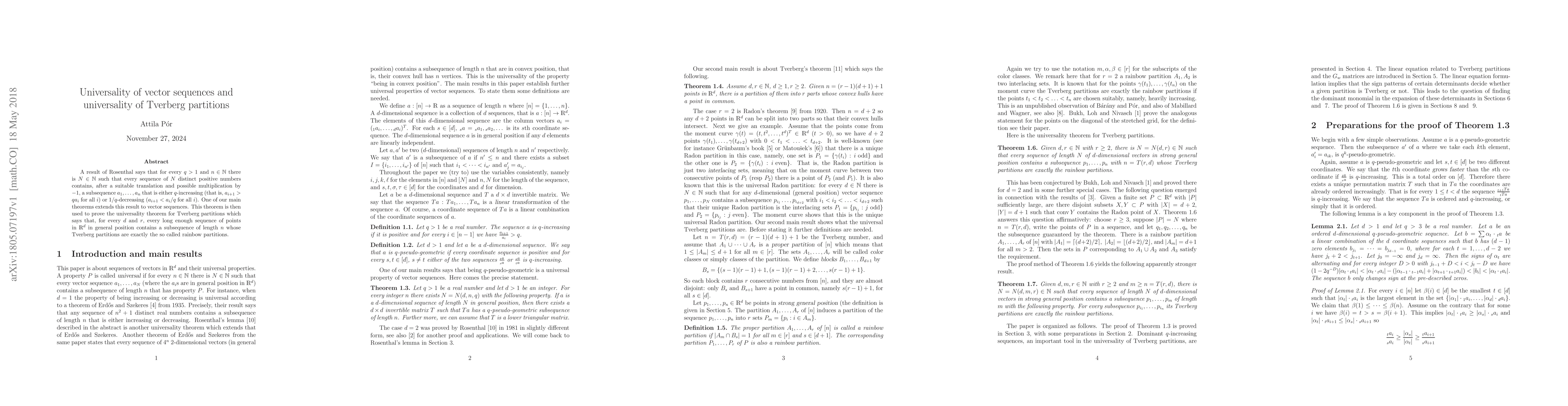 A research paper proves that every long enough sequence of points in d-dimensional space contains a subsequence with specific partition properties, extending a previous result on positive numbers.