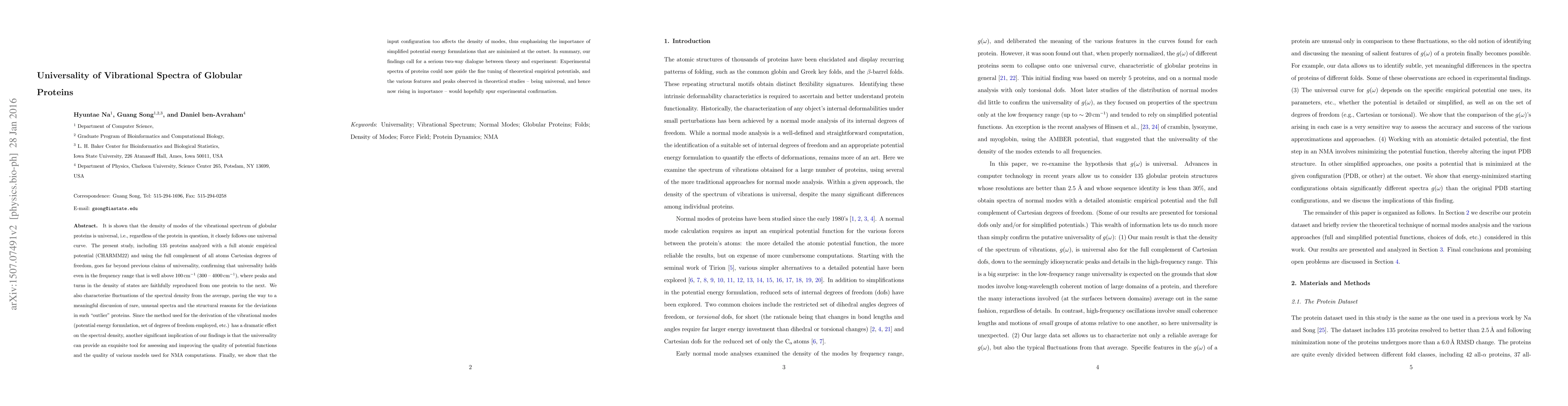 The study demonstrates that the vibrational spectra of globular proteins exhibit universality across different proteins, following a common curve even in the high-frequency range. This finding, derived from detailed atomic analysis, suggests that the universality can serve as a benchmark for evaluating computational models of normal mode analysis.