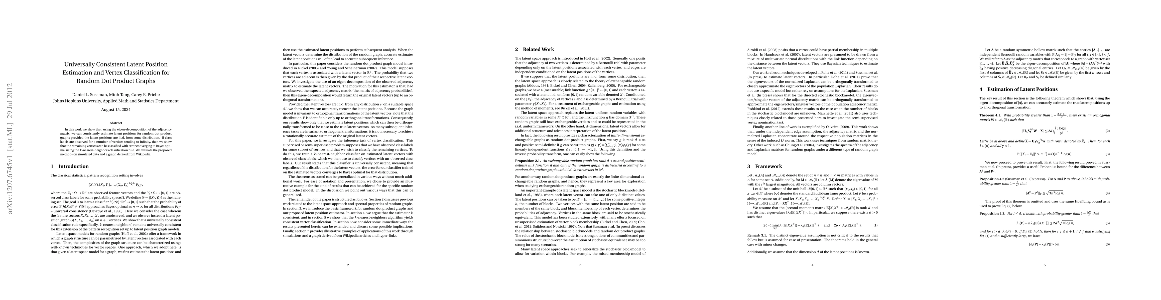 This paper demonstrates a method for estimating latent positions in random dot product graphs using eigen-decomposition, achieving consistency under i.i.d. latent positions. It also shows that with sufficient labeled vertices, the remaining vertices can be classified with error approaching the Bayes optimal rate using $k$-nearest-neighbors. The method is evaluated on both simulated and real-world data.