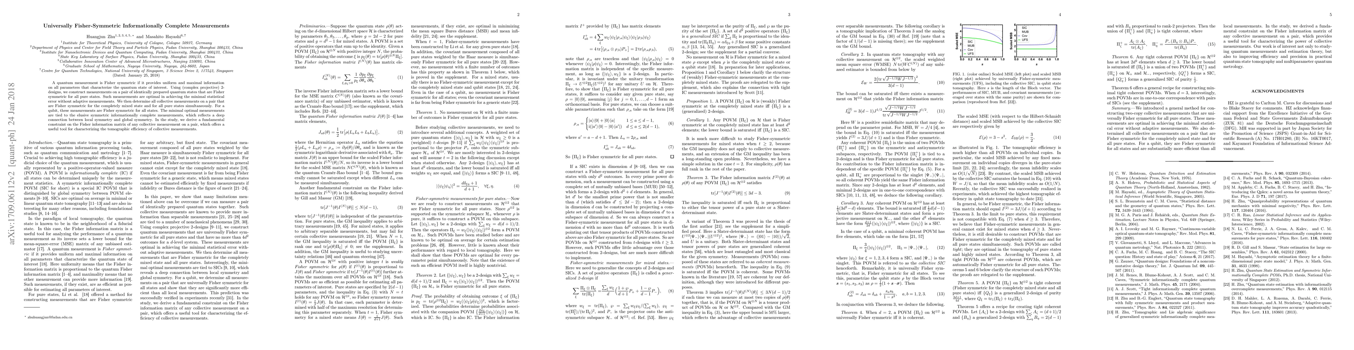 This paper constructs universally Fisher-symmetric informationally complete measurements using 2-designs, demonstrating optimal minimal statistical error for quantum state characterization. It reveals a deep connection between local and global symmetry in quantum measurements and provides a fundamental constraint on the Fisher information matrix for collective measurements on pairs of states.