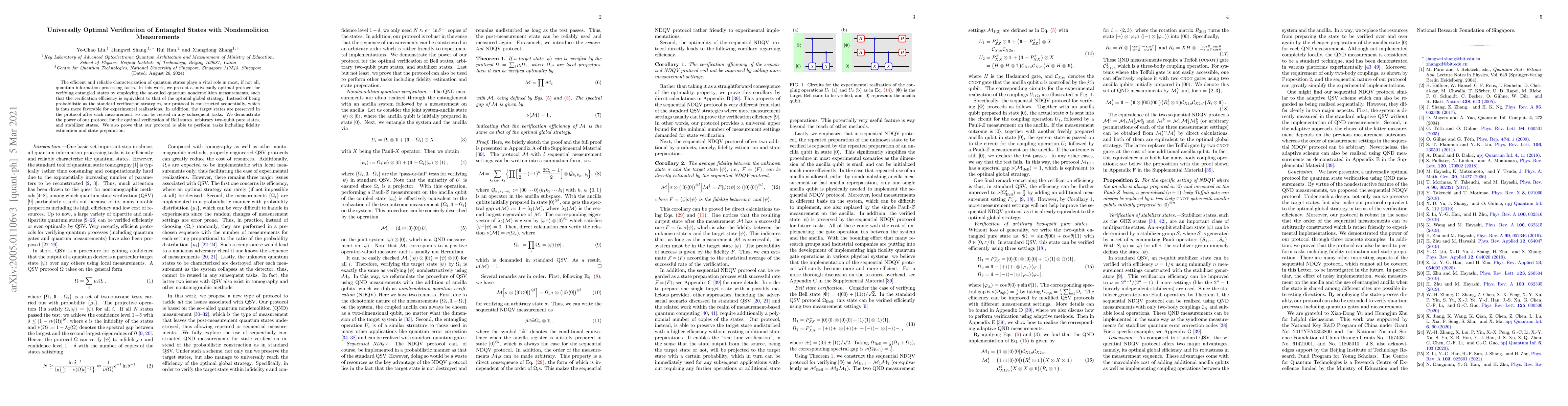 This paper proposes a universally optimal protocol for verifying entangled quantum states using nondemolition measurements, ensuring verification efficiency comparable to the best global strategy. The protocol is sequentially constructed for easier experimental realizations and preserves the target states for reuse, demonstrating its effectiveness for Bell states, two-qubit pure states, and stabilizer states, and also enabling fidelity estimation and state preparation.