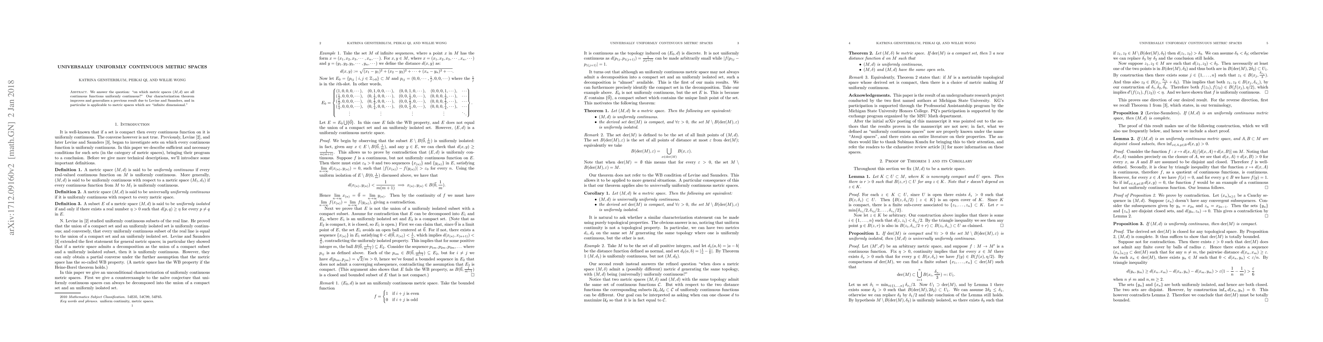 Summary: This paper characterizes metric spaces where all continuous functions are uniformly continuous, improving upon Levine and Saunders' previous result and extending its applicability to infinite-dimensional spaces. The theorem provides a new understanding of uniformly continuous metric spaces.