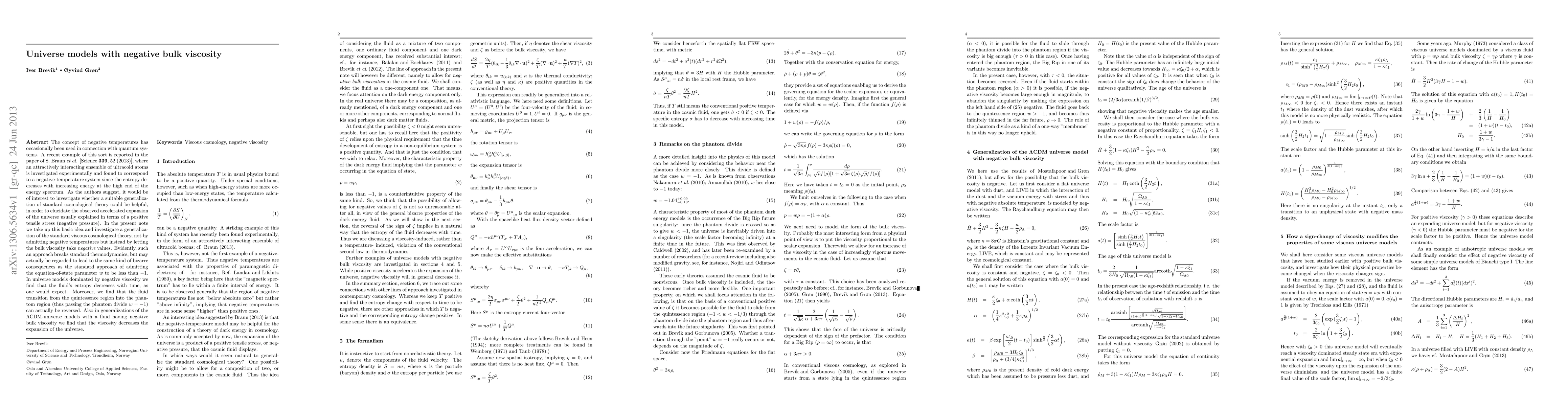 The research investigates cosmological models with negative bulk viscosity, relaxing the condition that entropy change in non-equilibrium systems must be positive, similar to allowing for negative temperatures in certain quantum systems.