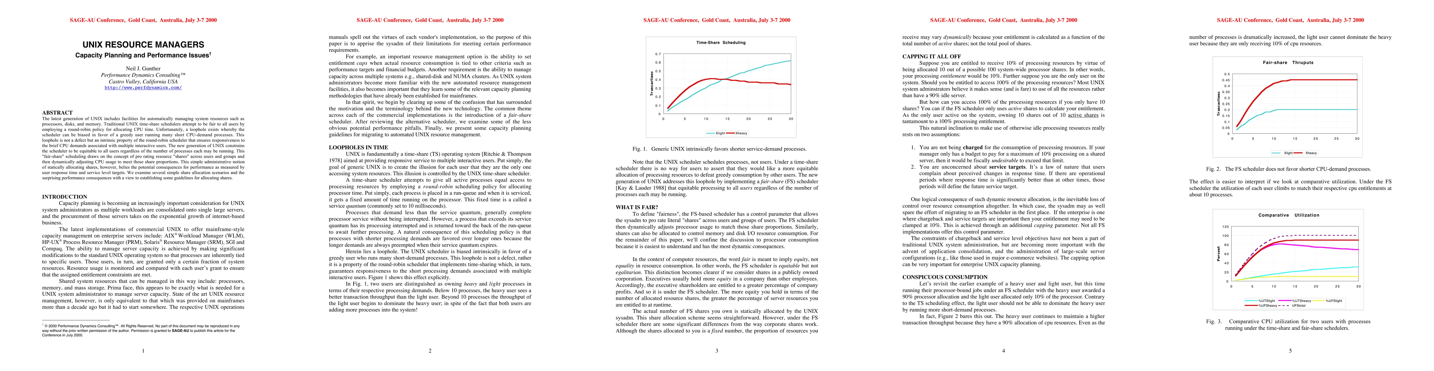 The latest implementations of commercial UNIX to offer mainframe style capacity management on enterprise servers include: AIX Workload Manager (WLM), HP-UX Process Resource Manager (PRM), Solaris Resource Manager (SRM), as well as SGI and Compaq. The ability to manage server capacity is achieved by making significant modifications to the standard UNIX operating system so that processes are inherently tied to specific users. Those users, in turn, are granted only a certain fraction of system resources. Resource usage is monitored and compared with each users grant to ensure that the assigned entitlement constraints are met. In this paper, we begin by clearing up some of the confusion that has surrounded the motivation and the terminology behind the new technology. The common theme across each of the commercial implementations is the introduction of the fair-share scheduler. After reviewing some potential performance pitfalls, we present capacity planning guidelines for migrating to automated UNIX resource management.