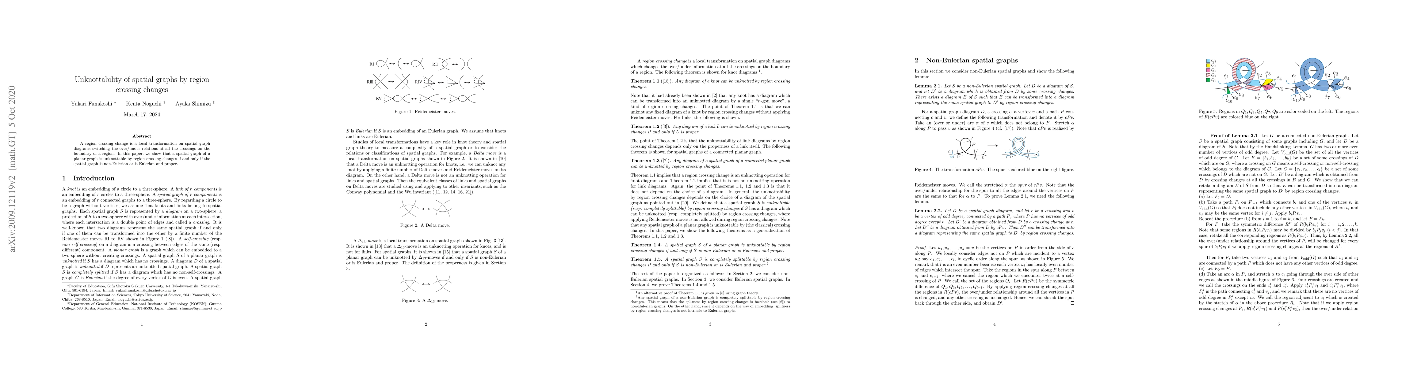 The paper introduces and proves properties related to region crossing changes, establishing a clear criterion for unknottability of spatial graphs based on Eulerian properties.