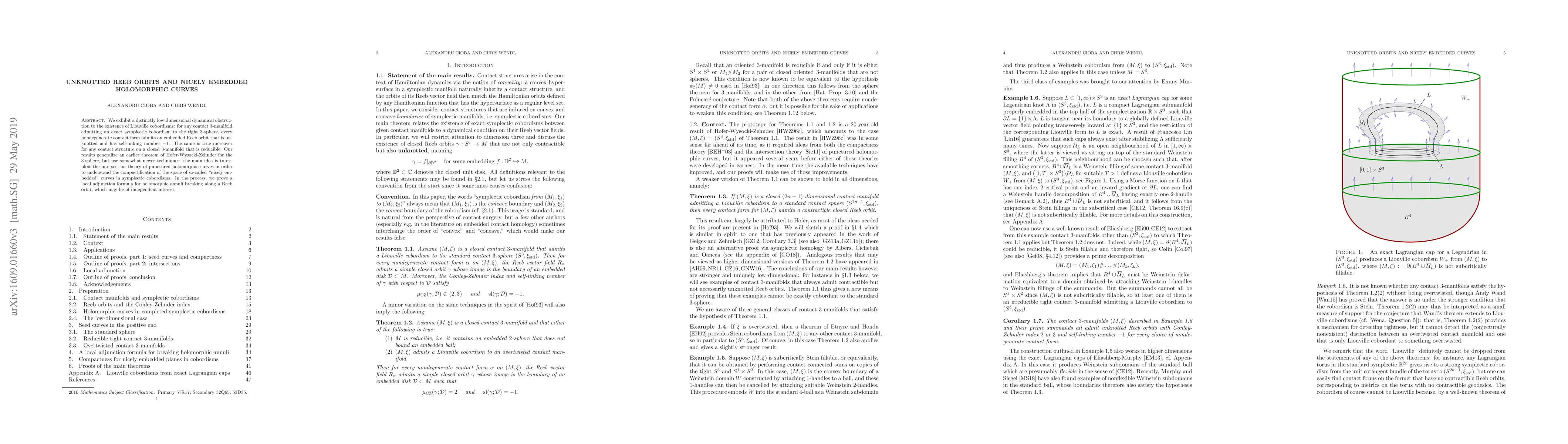 This paper demonstrates a low-dimensional dynamical obstruction to Liouville cobordisms in contact 3-manifolds, showing that nondegenerate contact forms must have unknotted Reeb orbits with self-linking number -1. The authors generalize a prior theorem using intersection theory of punctured holomorphic curves and prove a local adjunction formula for holomorphic annuli.