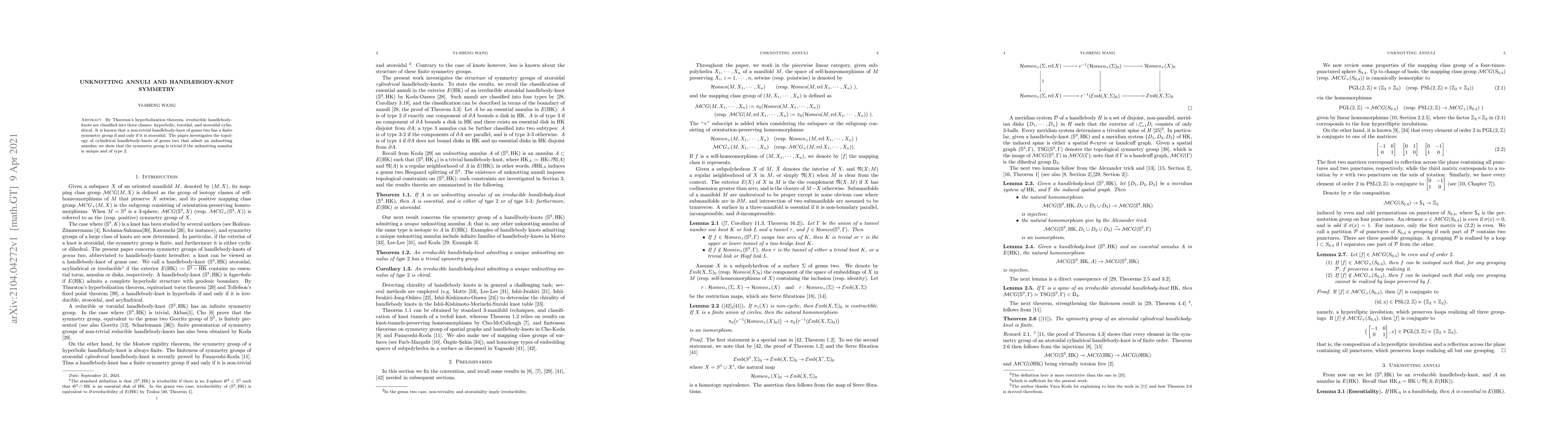 This work extends previous findings on symmetry groups of handlebody-knots by providing a more specific classification based on the type of unknotting annulus.
