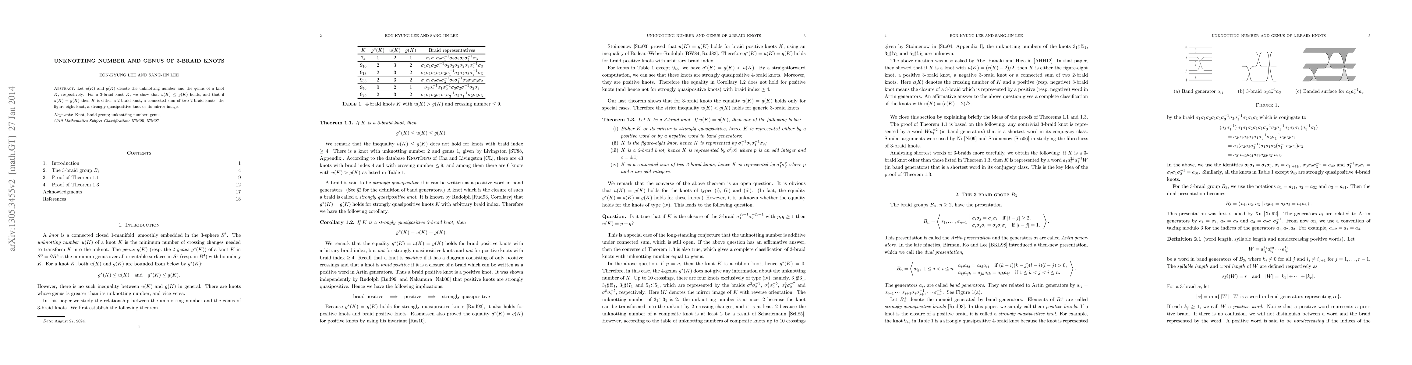 This research demonstrates that for 3-braid knots, the unknotting number $u(K)$ is always less than or equal to the genus $g(K)$. When $u(K)$ equals $g(K)$, the knot is specifically identified as a 2-braid knot, a connected sum of two 2-braid knots, the figure-eight knot, a strongly quasipositive knot, or its mirror image.