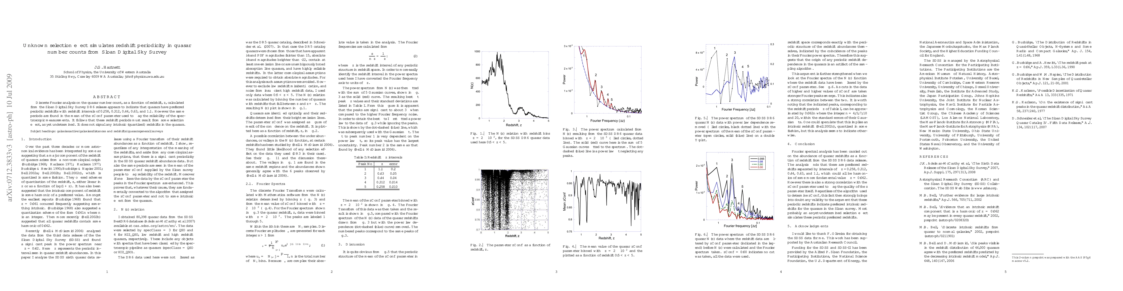 The study finds apparent periodic redshifts in quasar counts from the Sloan Digital Sky Survey, but these patterns are actually due to selection effects related to the $zConf$ parameter, rather than intrinsic quasar properties. The observed redshift intervals do not indicate quantized redshifts in quasars.
