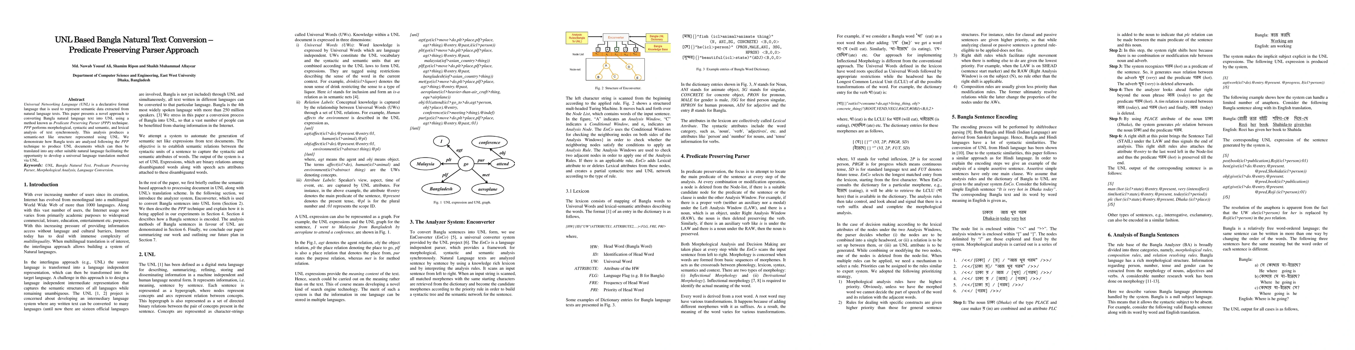 This paper introduces a Predicate Preserving Parser (PPP) technique for converting Bangla natural text into Universal Networking Language (UNL), enabling semantic-net representation and cross-language translation. The PPP method performs simultaneous morphological, syntactic, semantic, and lexical analysis to produce UNL documents.