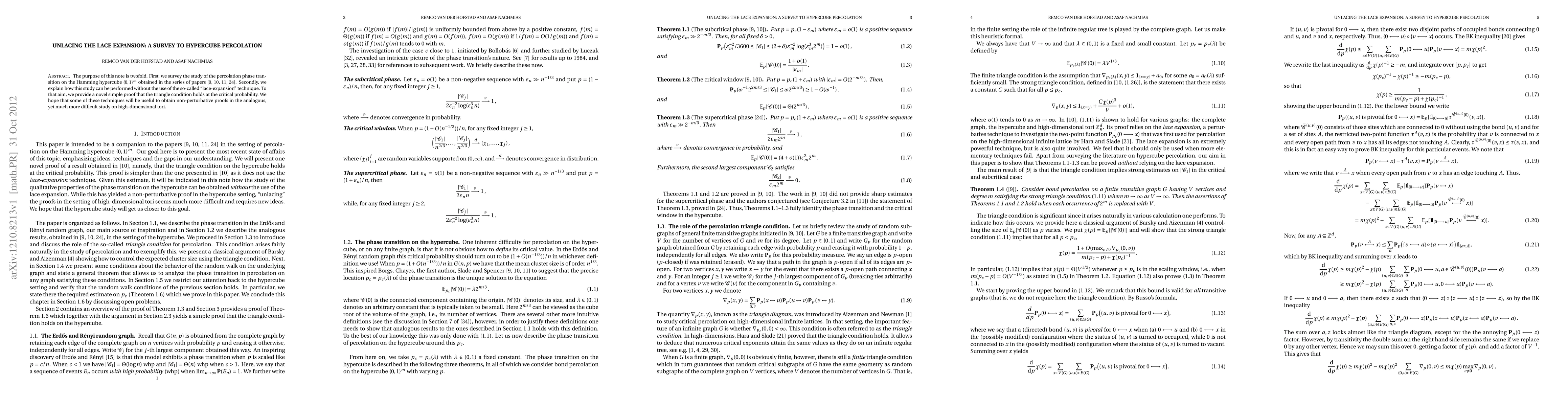 Researchers surveyed the study of percolation phase transition on the Hamming hypercube and provided a novel proof that the triangle condition holds at critical probability without using the 'lace-expansion' technique.