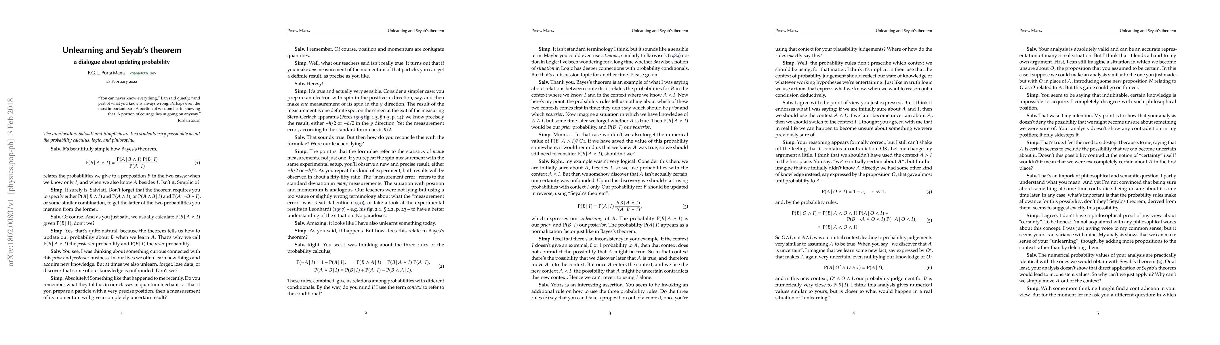 This dialogue explores the possibility of updating a probability as a consequence of unlearning, reversing the role of prior and posterior probabilities.