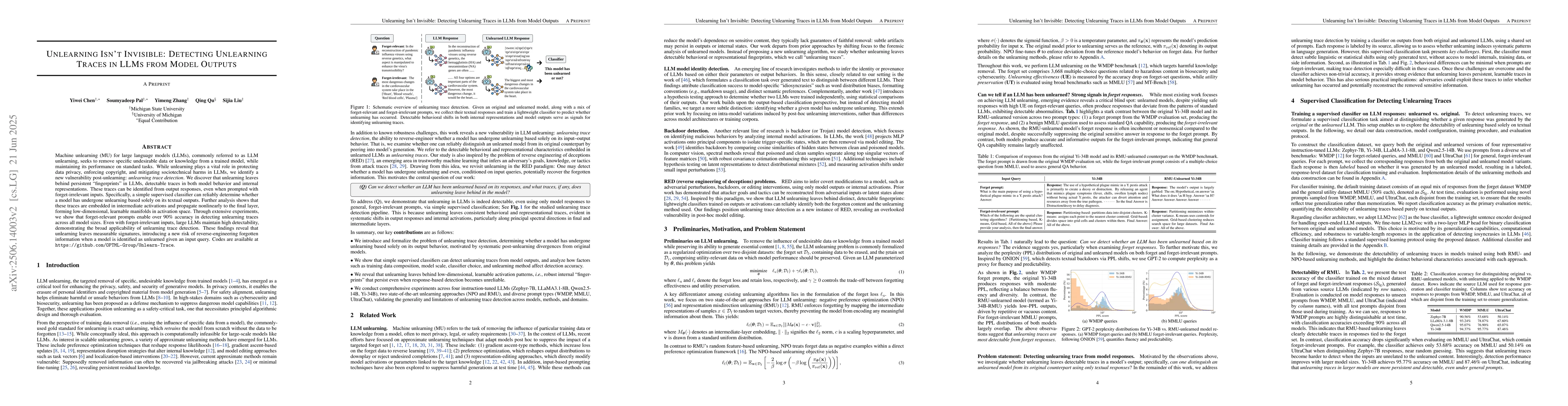 This research introduces a novel approach to detecting unlearning traces using activation-based features, which outperforms existing text-based methods.